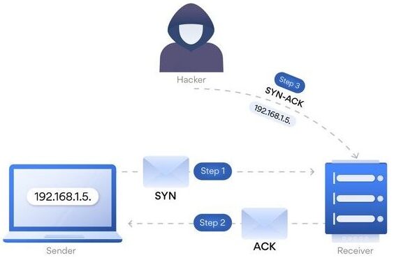 - IP Spoofing Atakları: Man in the Middle atağına benzer olarak saldırganın araya girerek kendisini kullanıcı gibi gösterdiği ve iletişim sırasında kullanıcının gönderdiği paketlerin yanıtlarını kendi üzerine alması ile sağlamış olduğu atak türüdür. Kaynak hedefe paket gönderdikten sonra kendi IP adresini kaynak IP gibi göstererek ağ üzerinden yanıt olarak dönen paketleri yakalama ve okuma imkanı bulmaktadır. Bu tür durumlarda trafik açık olarak yakalanabileceği gibi veri kaybı da yüksek oranda olmaktadır. Söz konusu atak internet üzerinden yapıldığında saldırgan, TCP doğrulamasının üçüncü aşamasına başlamadan önce el sıkışmasını durdurur. Bunu, protokoldeki boşlukları kullanarak gerçekleştirmektedir. Durdurma işleminden sonra saldırgan, sahte IP adresini içeren sahte bir onay gönderir. Alıcı, gerçek göndericiyle bağlı olduğunu düşünerek veri aktarımını sağlamaya başladığında sahte bir IP ile eşleşmiş olduğunu fark etmemektedir ve veri kaybına sebebiyet vermektedir.