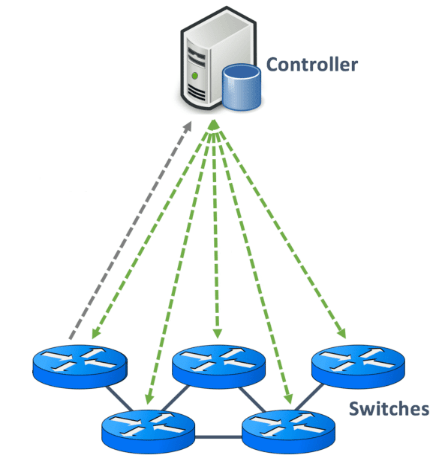 The ports of the network device and the rules responsible for packet transmission are managed from a single point by disabling standard network protocols. A single configuration becomes available for multiple devices via a central interface, without the need for the network administrator to configure the network devices separately in this way. OpenFlow does not directly interfere with the behavior of the controller. Network traffic monitoring, packet prioritization, communication restriction, or decisions to be taken for certain updates are made via OpenFlow through the controller.