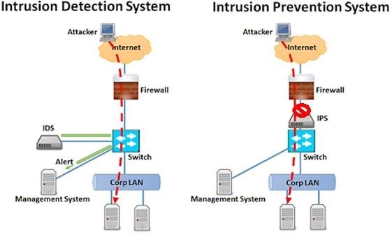 IDS and IPS read network packets and compare their contents against a database of known threats. The main difference between them is what happens next. IDS are detection and monitoring tools that do not act on their own. IPS is a control system that accepts or rejects a packet according to a set of rules. IDS does not take action on its own against the events it detects, but IPS can interfere with incoming/outgoing packets in network traffic based on predefined rules and action sets.