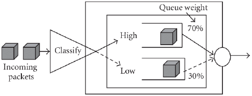 Belirli bir uygulamaya (bizim durumumuzda VoIP uygulaması) uygun miktarda bant genişliği sağlamak istediğimiz durumlarda kullanılabilir. Bu durumlarda, ağ yöneticisi, sınıflardan birinin örneğin bir video konferans uygulaması için, diğerinin bir VoIP uygulaması için vb. amaçlandığı, tanımlanmış bant genişliği miktarlarına sahip sınıflar sağlamalıdır. Aynı prensip, belirli miktarlarda bant genişliğine ihtiyaç duyan diğer tüm uygulamalar için kullanılabilir. Bu tür sınıflar, akış tabanlı bir WFQ algoritması tarafından sunulur.