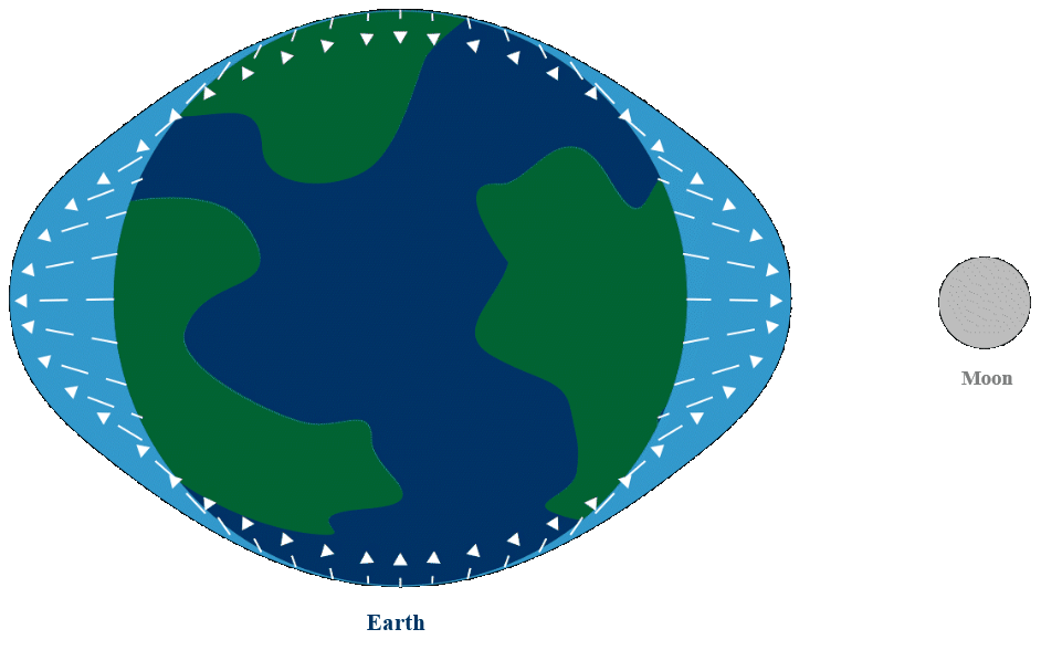 Ay da Güneş de kütleleri sayesinde Dünya’yı çekim kuvvetiyle etkiler. Bu çekim, özellikle Dünya’nın okyanuslarını ve denizlerini oynatır. Su kütleleri ayın çekim kuvvetine bağlı olarak yükselir ve alçalır. Ay, Dünya’ya çok yakın olduğu için en büyük çekim etkisini yaratır. Dünya’nın Ay’a yakın tarafı, Ay’ın çekim gücünden daha çok etkilenir ve buradaki sular Ay’a doğru çekilerek bir şişkinlik oluşturur. Aynı zamanda Dünya’nın merkezi yani katı kısmı Ay tarafından biraz daha çekilir, ancak uzak taraftaki sular bu çekime göreceli olarak daha az maruz kalır. Böylece Dünya’nın bir yanında Ay’a bakan, diğer yanında ise Ay’dan uzak olan bölgelerde iki ayrı gelgit kabarması oluşur. Uzak taraftaki su, Dünya’nın kütlesiyle merkezkaç etkisi sebebiyle şişkinlik oluşturur. Bu durum yalnızca geceleri değil, Ay’ın konumuna bağlı olarak gün boyunca gözlemlenebilir. Bu yüzden günde 2 defa deniz seviyesi yükselir ve 2 defa alçalır. Dünya döndükçe bu su şişkinlikleri hareket eder ve biz bu döngüyü kıyılarda suyun yükselip alçalması olarak, yani med-cezir olarak görürüz. Güneş de aynı etkiyi yapar ama Ay kadar güçlü değildir. Ayrıca göller çok küçük su kütleleridir ve Ay’ın çekim etkisi gölün yüzeyinde hissedilmeyecek kadar küçüktür. Okyanuslar gibi devasa su kütleleri olmadığı için gözle görülür bu sebeple de gelgit sadece denizlerde ve okyanuslarda olur. Ancak ayın dolunay ve yeniay evrelerinde Güneş ve Ay aynı doğrultuda olduğunda çekim etkileri birleşir ve gel-git farkı daha yüksek olur, bu da dalgaların ve deniz seviyesinin olağanüstü artmasına yol açabilir.